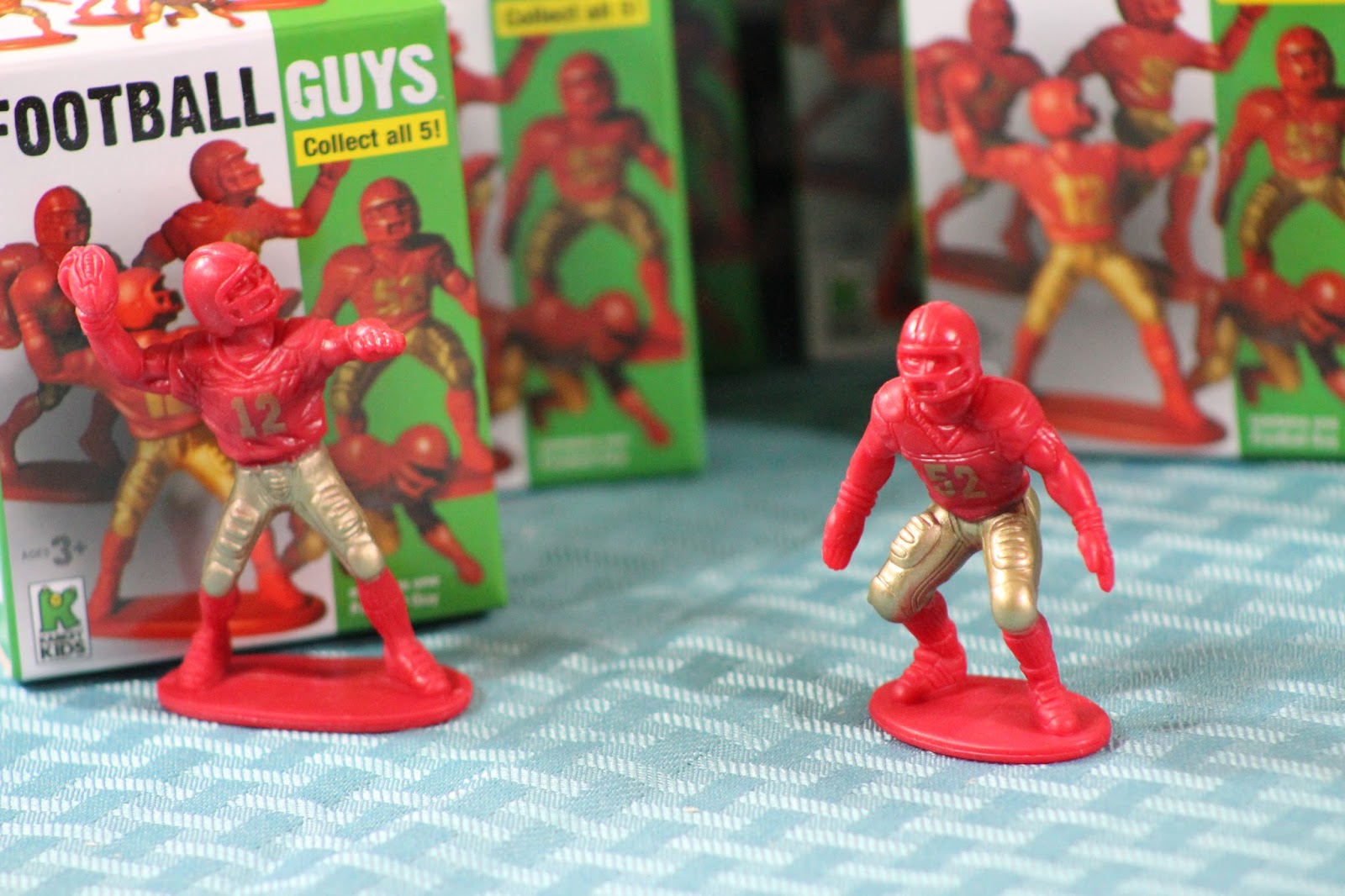 When it comes to the kids and hosting parties for them and their friends, I like to seek out the characters or themes that they are interested in most. Like many kids, mine enjoy playing and even watching a variety of sports. So when we were sent some of the Football Guys from Kaskey Kids to add to our Superbowl party line up for the kids this last weekend, I was excited to set them out and let the kids enjoy them.