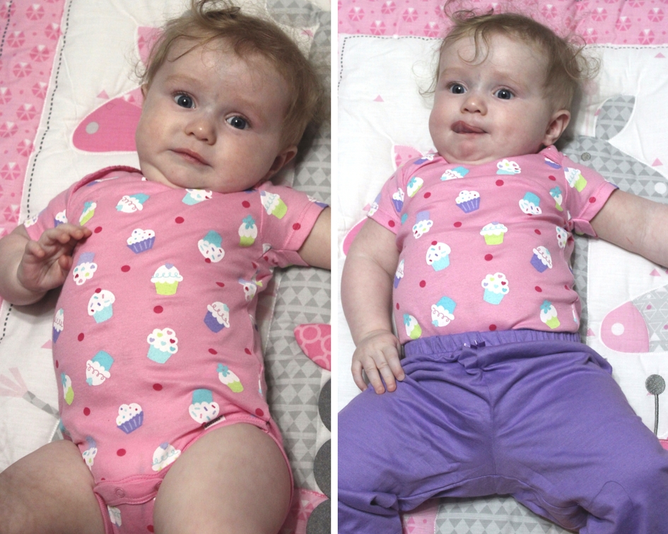 We received the cupcake short sleeved body suit and matching pants from the line of mix and match pieces from ONESIES® Brand, which can be found at Walmart. These are just cute as can be! The expandable lap shoulder neckline make it super easy to put on over Zoey’s head. This can be handy for when she should happen to get messy, such as a blow out, this makes it even easier to slide it off instead of over her head. Allowing us to keep the mess down to a minimum, and with the higher snap front closure, it makes it easier to snap shut with a wiggly baby when we are changing her.