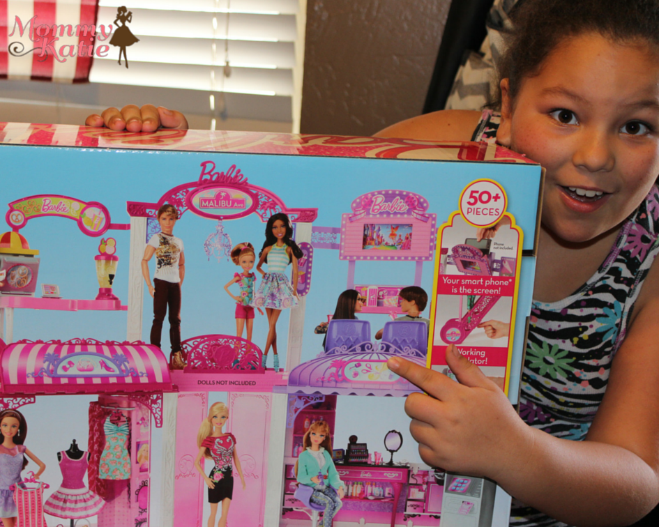 Like many girls out there, when it comes to making those birthdays and even celebrations like Valentines Day special, we like to add products from Barbie to the mix. To help with finding those Barbie favorites, we were sent the Barbie Malibu Ave. Mall, which is not only on the list of those Barbie favorite items, but is also found exclusively at Toys R Us!
