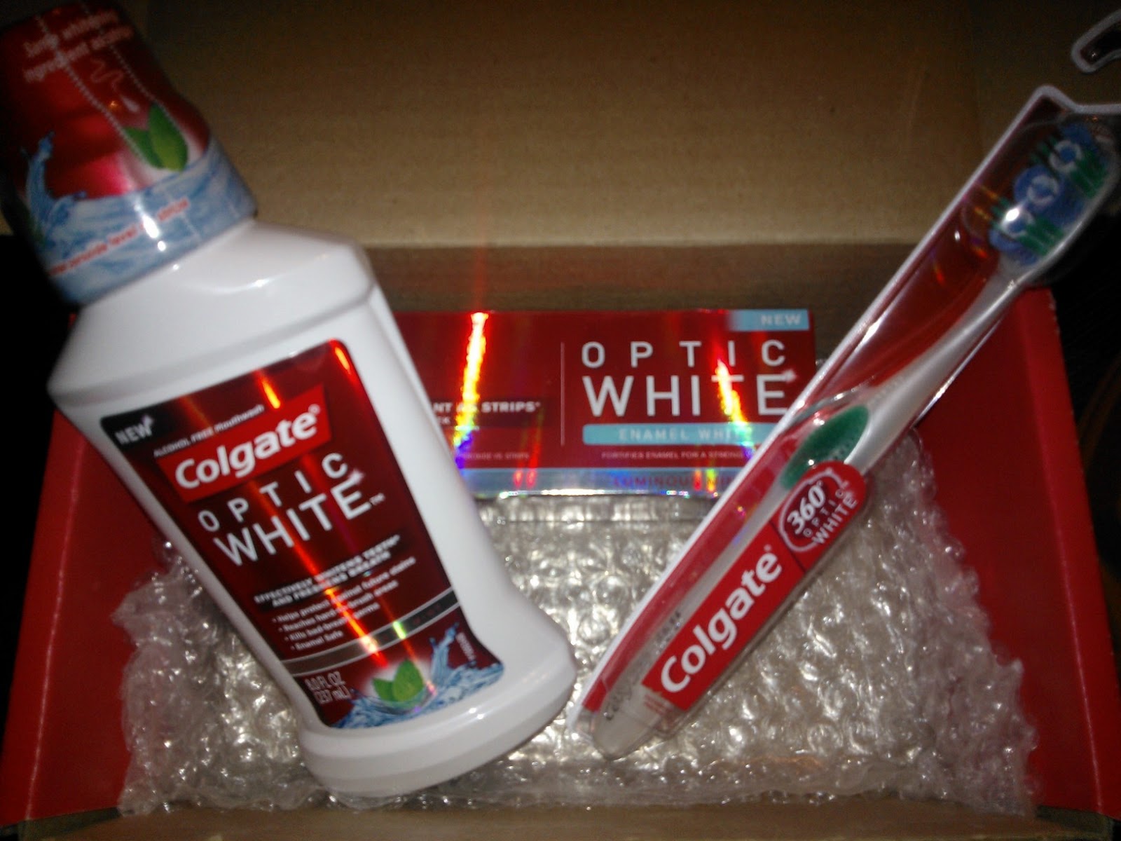 Over the holidays we eat a lot of foods, a lot of sweets and while we are enjoying all of the holiday goodies, we do not always keep our teeth in mind. We may brush on a regular basis, but as far as getting them white, we may put that off. Then comes the new year, and we make our resolutions, but some may be harder to keep because a lot of us do not want to wait to see results. So how about keeping one for once, how about making a New Years Resolution to whiten your smile? To make this resolution a easy one to keep and one that you can get results from in about 5 days, use the Colgate Optic White products. I was sent a pack of some of the new Colgate Optic White products to review over the holidays. I decided to wait until New Years Day to start using the Colgate Optic White products, and after one week, I have found the results to be very pleasing. It seems that with using the Colgate Optic White products, I have been seeing a gradual difference in the color of my teeth. They are not as white as I would like them to be, but they are definitely and noticeably whiter than they were 7 days ago. To get the results that I got, I used the Colgate Optic White Enamel White Toothpaste, the Colgate Optic White Mouthwash and the Colgate Optic White Manual Toothbrush twice a day for 7 days. I love that the toothpaste and mouthwash contain Hydrogen Peroxide, which helps both whiten your teeth, protect against future stains and fight bad breath. Then with the toothbrush you get the rubber whitening cups that hold your toothpaste in place and with the polishing bristles, help clean off those surface stains as well as clean your entire mouth! I am impressed with the results I got and I found this resolution to be a easy one to keep. If you would like to see your teeth looking whiter in about a week, then try out the line of Colgate Optic White products!