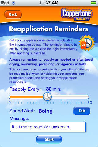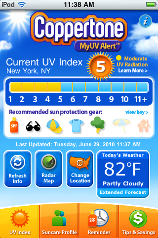 Coppertone MyUV Alert iPhone App - Durable, broad spectrum UVA/UVB protection