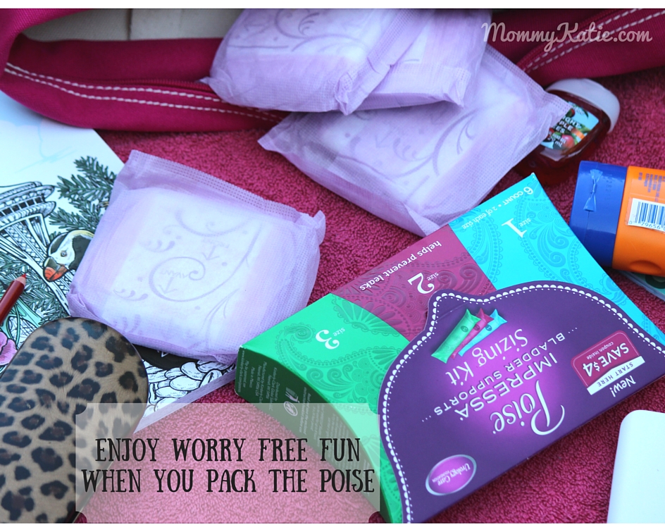 I personally have found that when heading out, having both the Poise Impressa and the Poise Thin Shape Pads are a must have to pack, and with items like an adult coloring book, you can relax and enjoy your time without the stress of bladder leaks getting in the way.