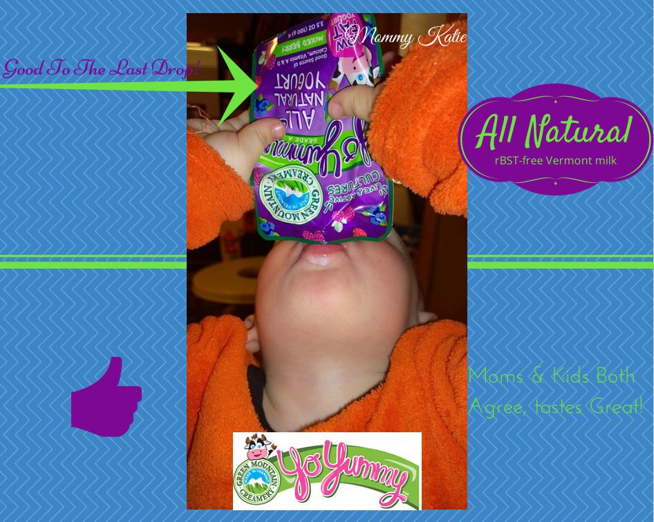 The first thing that I noticed when unpacking the YoYummy products was the bright, colorful, and playful designs on the pouches. Right away, the kids were wanting to give them a try. I decided that I would try these yogurts out with the kids as well. To my surprise, I was amazed on the flavor that these yogurts from YoYummy have. The kids also enjoyed the flavors and they liked that they could have these during snack time at the house. Aside from the fact that the flavor is something that both me and my kids enjoyed, I also like that when my kids eat the yogurts from YoYummy, they are eating all natural yogurt! I appreciate that the milk used to make the yogurt from YoYummy is rBST-Free milk from Vermont, and that they use real fruit to flavor the yogurt and sweeten it!