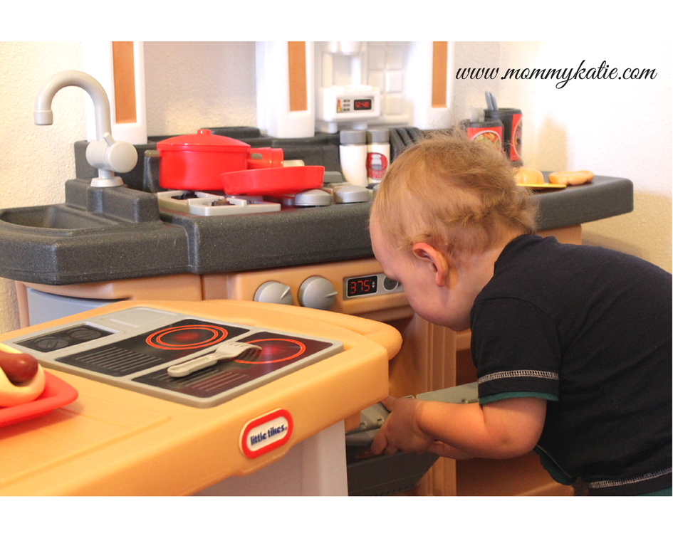 Like the fun play kitchens that my older kids each had when they were younger from the Little Tikes company, Wyatt has found this kitchen to offer hours of fun for him.