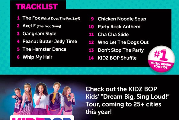 With the music that is on this CD, the kids can enjoy singing and dancing along to some of those fun songs that they hear on the radio. The songs include favorites like, “Peanut Butter Jelly Time”, “Cha Cha Slide”, and more, which are songs that can really get the party started and get everyone up on their feet, dancing and singing along! You can get the party started in your house today, by heading out and getting the new CD, Kidz Bop Party Pop!