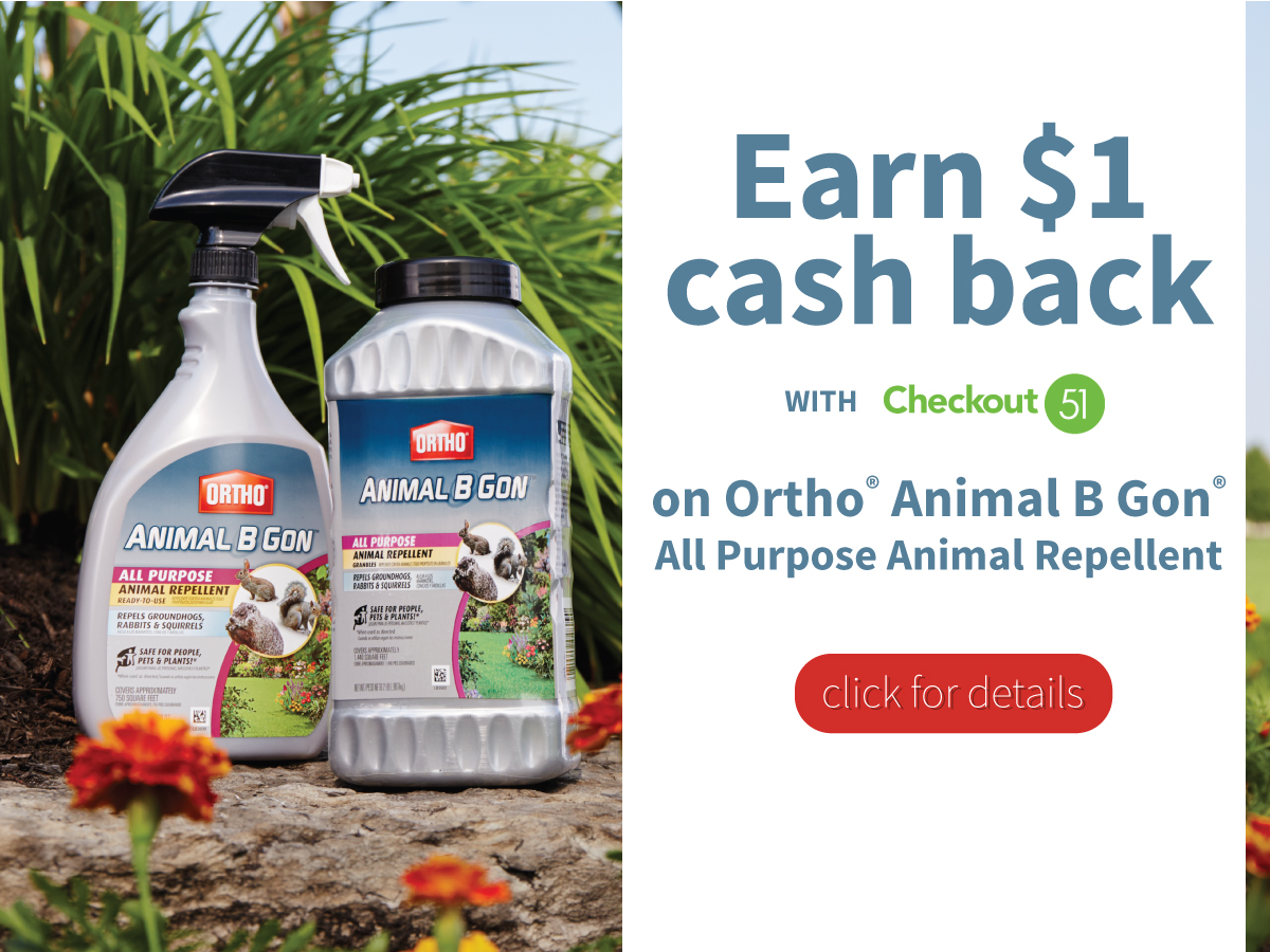 Not only is this a great product, but you can also save $1.00 by using Checkout 51 when you purchase Ortho® Animal B Gon® Animal Repellent at Walmart. Checkout 51 is a grocery savings app that gives you new offers weekly, and lets you earn cash back on your purchase by taking a photo of your receipt.