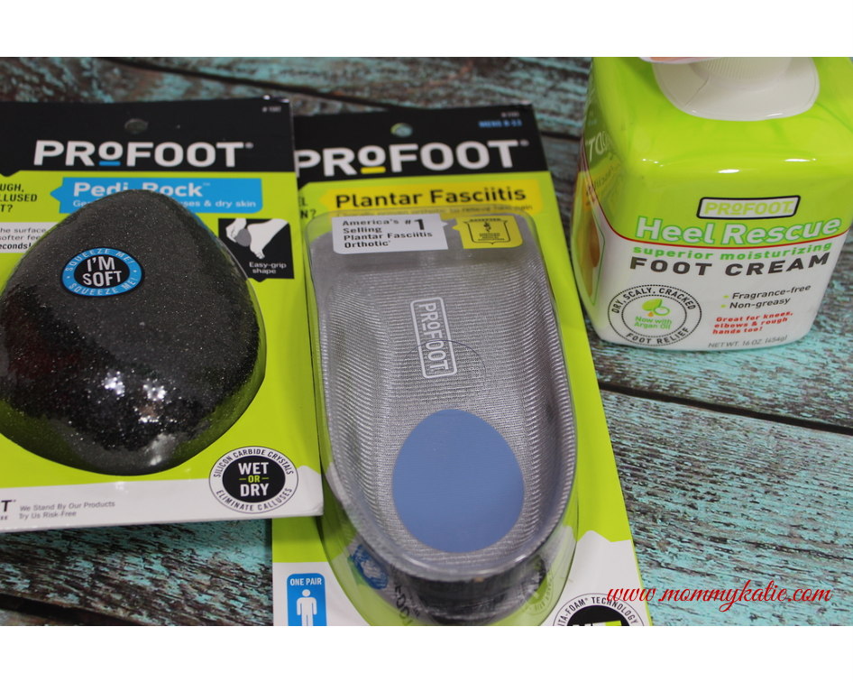 Feet play an important role in our health and in our everyday activity. We use our feet to get around, to walk, run and play, so insuring they are healthy and pain free is important. I know that when I have been pregnant, my feet became very sensitive, and eventually causing issues with my walking when they became swollen. So when my husband began having issues with his own feet, and got to the point where it was extremely painful for him to walk around, I knew it was time to take him to a foot Dr. and have a professional look at his feet. Soon after seeing the Dr., my husband was diagnosed with a condition called Plantar Fasciitis. Being the one who has to know as much as she can about any ailment that might affect my family, I went to his Dr, and not only learned what he had to teach me about the condition and how to help my husband with pain management, but I also read through the literature that his office had. I found that aside from the taping of the feet, finding inserts for my husband’s shoes that provide the correct amount of arch support could also help offer pain relief in his feet. Recently I was sent a pair of insoles from ProFoot which offer just that when I was sent the inserts for Plantar Fasciitis to review. Aside from the inserts, we were also sent some Heel Rescue Foot Cream and a Pedi Rock, all from the ProFoot line of products! For the past couple of weeks since my husband has been using the inserts, he has found a tremendous amount of relief from the pain that his Plantar Fasciitis causes. We have both also found the Heel Rescue Foot Cream and Pedi Rock to be great for using after a long day of being up on our feet, making the products from ProFoot to be a great selection for those who suffer from Plantar Fasciitis! So if you or someone you know has issues with the condition known as Plantar Fasciitis, talk to your Dr and get the advice and discuss the treatment they can offer, and also check out the products from ProFoot today!