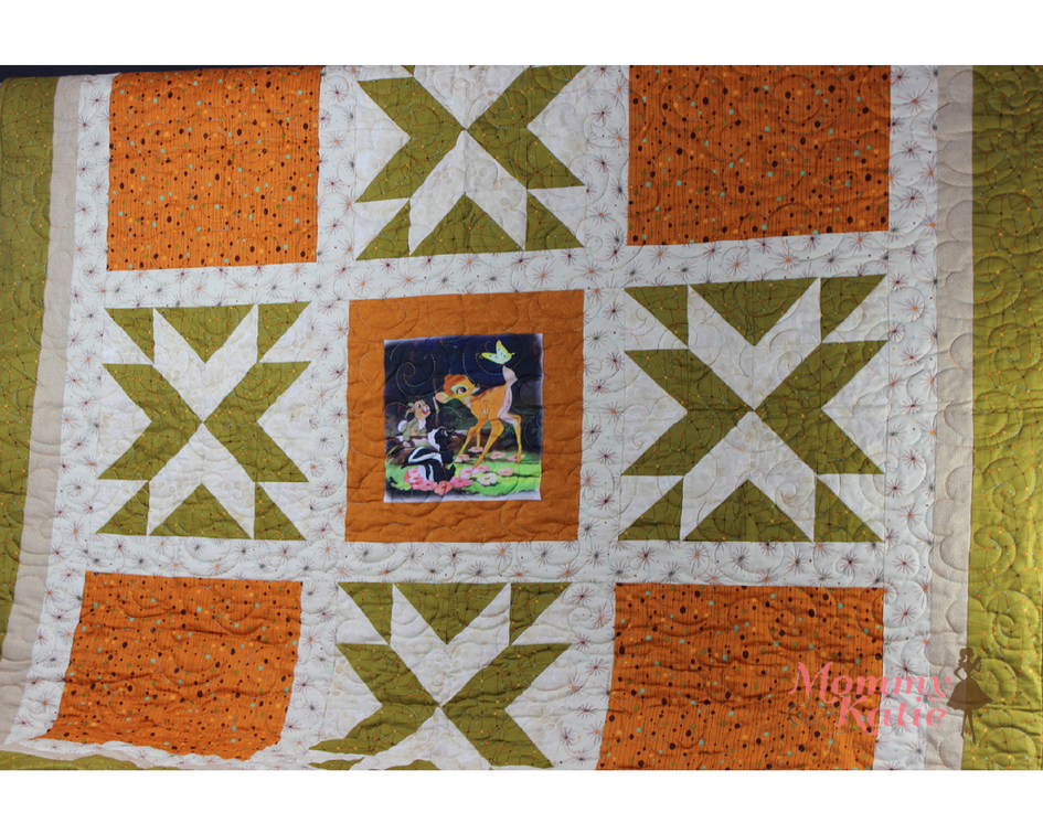 A quilt can represent many things, and for me, I see the patches that are sewn together, and placed so carefully in each quilt, not only provide warmth, but a sign of care and love. So having a quilt that is made to comfort and keep baby warm, is something I have looked for. Recently I found a quilt, one that not only is very soft, and very comfortable, which will be suitable for using when the new baby gets here, but also goes with the Bambi themed items we have been putting together for the new babies arrival!