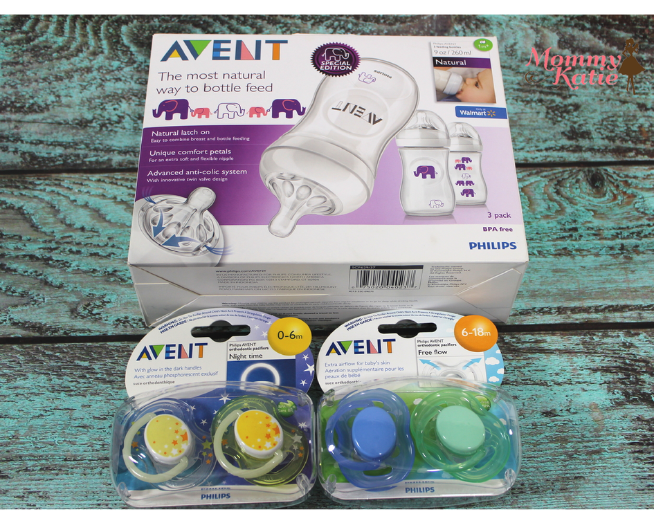 As we find the products that will assist us when caring for baby, I like to keep in mind that with the new baby, we will not only be breastfeeding, but also bottle feeding, so having products that will help with that transition along with soothing baby, is very ideal! To help with feeding and soothing baby, we were sent a pack of the Philips AVENT Natural Bottles, and some of the Philips AVENT Free Flow and Nighttime Pacifiers to review!