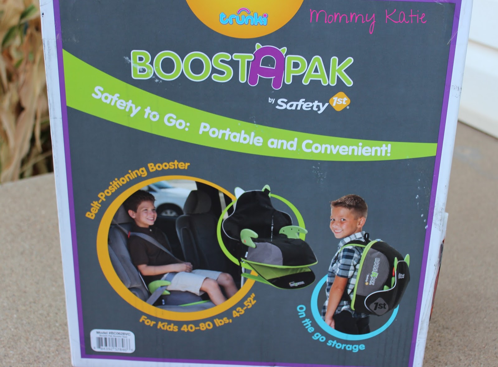 Well for the older kids, there is also a new, easier to transport solution when it comes to the booster seat. Recently I was sent the BoostAPak from Safety 1st to review. I find this booster to be very portable and convenient for both Robert and Estrella.