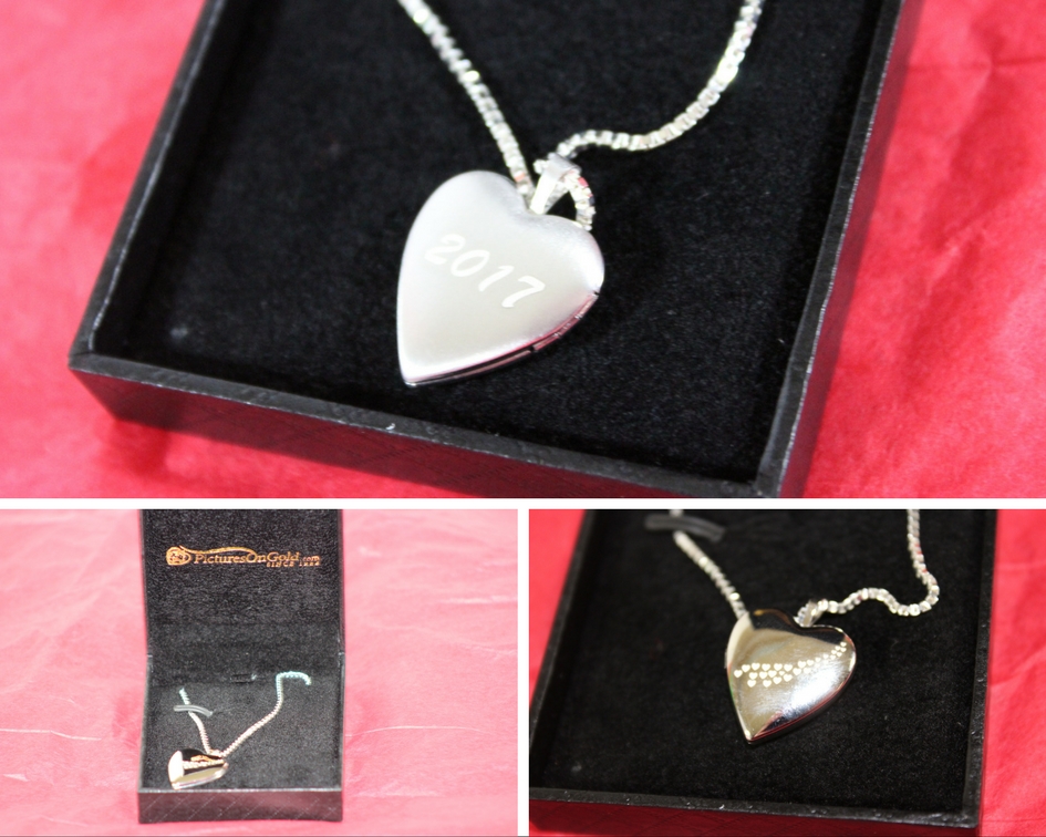 For the review I was sent the personalized Sterling Silver Sweetheart Cascade of Hearts Heart Locket. When it arrived I was very pleased to see that the photos I picked out were etched very nicely on the inside panels of my new locket.