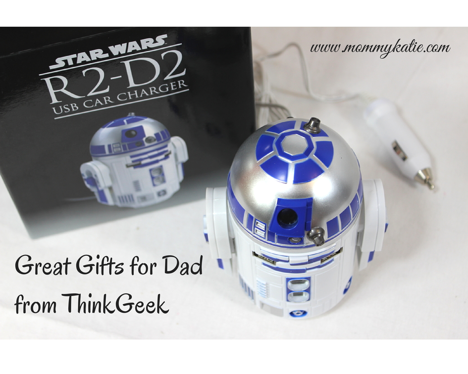 For my dad, I was sent the R2-D2 USB Car Charger, which I know will come in handy for my dad! With this ThinkGeek Star Wars Exclusive, dad can charge any of his USB compatible devices while he is on the go. Dad can appreciate the design and also appreciate the 2 USB ports which are on this awesome charging device. Another feature, that I think my dad will get a laugh from is when the devices are properly plugged in and R2-D2 is ready to charge, his head will spin and light up and he also whistles and beeps.