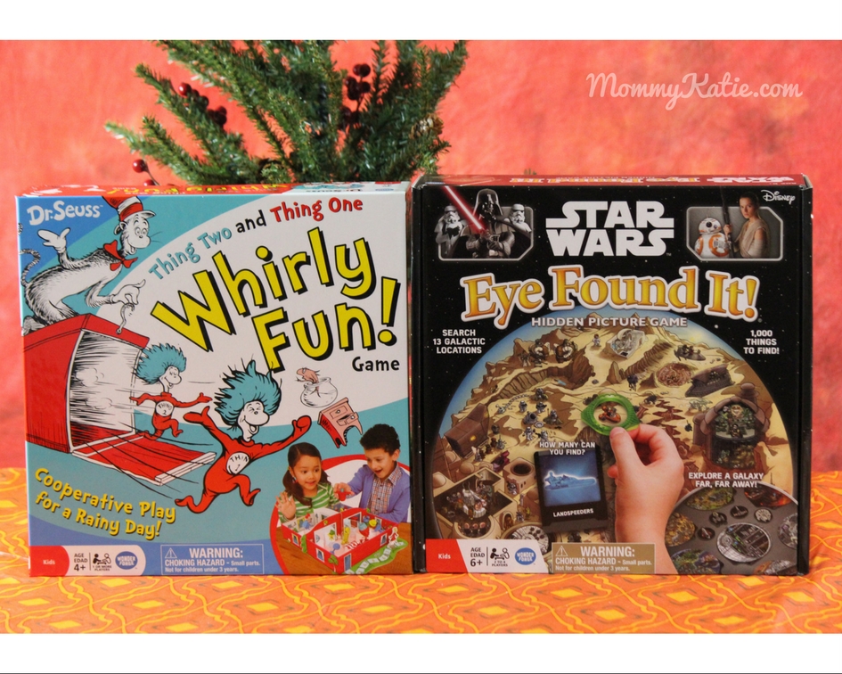 For those family games that we can play with the kids I found that the Dr. Seuss Thing Two and Thing One Whirly Fun! Game and the Star Wars Eye Found It Game to be a great addition to our collection. With the Dr. Suess Whirly Fun Game, those fun characters Thing 1 and Thing 2 are at it again and ready to play. Giving us a game that brings cooperative play to the table that my youngest can have fun playing along with our other kids during family game night. We also found the game, Star Wars Eye Found It to be a fun game that gives the kids a chance to explore the galaxy and find the hidden treasures along the way!