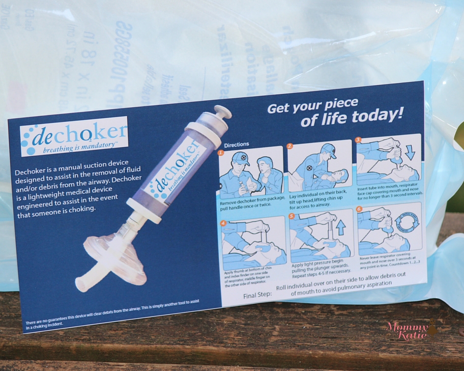I like that with the Dechoker, we can have a device that can potentially save a life in our home, that is simple to use. The Dechoker is a manual suction device that when put into place properly on a choking victim, can help to assist with the removal of any fluid and or debris that might be blocking their airway.
