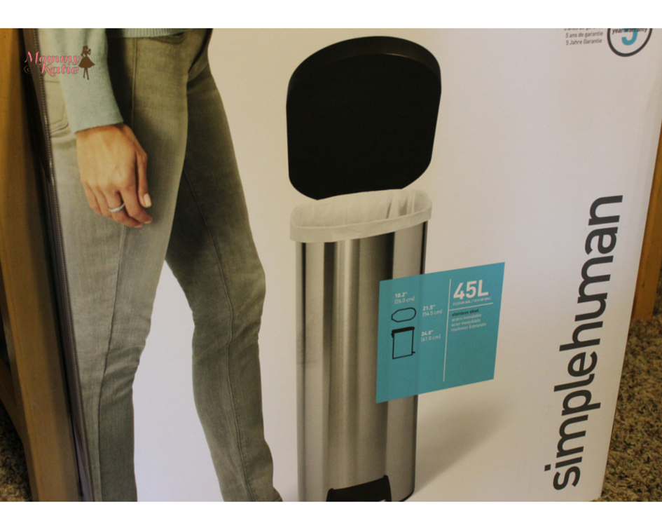 I try to keep from the spreading of germs and bacteria, but if I touch the trash can when I am cooking, I can not only risk picking up unwanted germs but I can also add more that I do not want my family coming in contact with. So this year, to help with keeping those germs and bacteria to a minimum when it comes to the trash can, and to also help keep life during the holidays or any time of year a little more simpler, I was sent the 45L Slim Step Can from Simple Human to review!