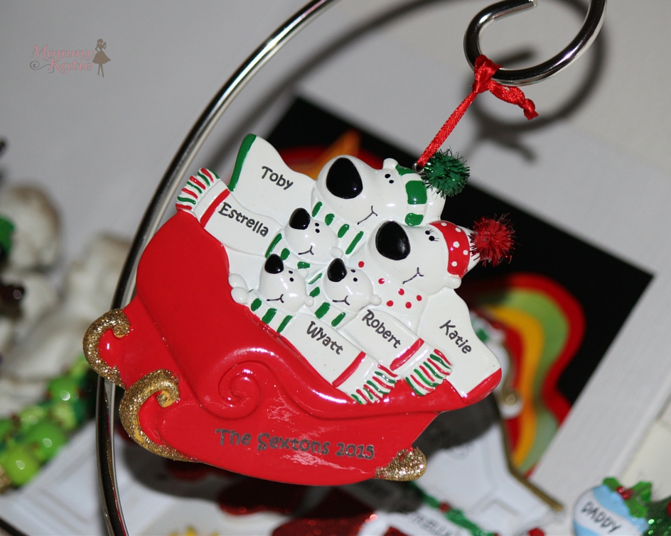 This year we chose to go with the Polar Bear Personalized Ornament, which has a fun sledding theme to it. I also like that with this ornament, we were able to add everyone’s name to the scarves that are on the polar bears, then our family name and year to the sled.