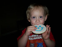 Thanks for stopping by this am and welcome to my little Bloggy family :)LOL! Those cookies are as big as your little man's head! They look really yummy I would have to say the smiley face ones are my favorite;)