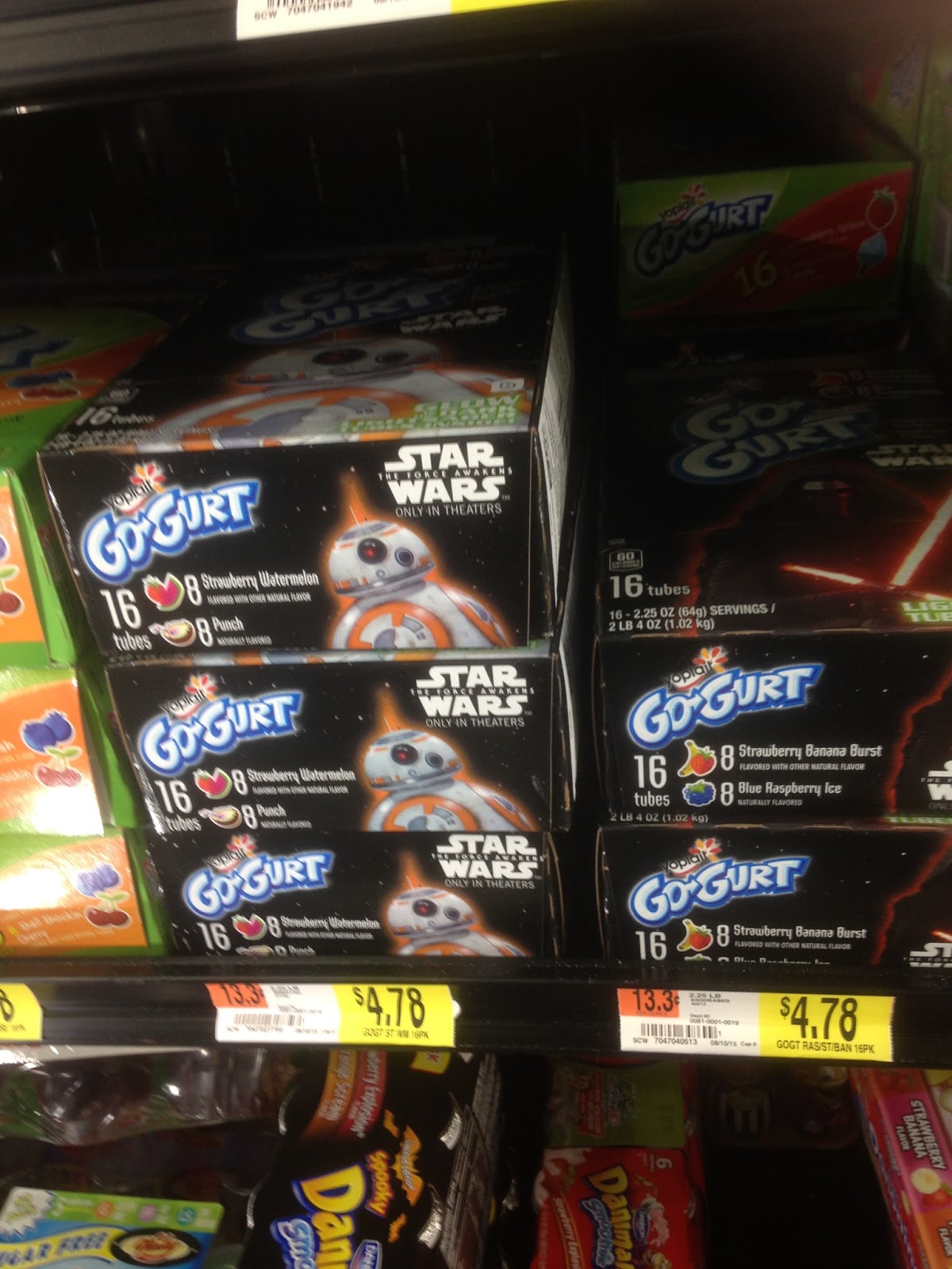 For the Star Wars™ Go-Gurt, we were able to locate them in the dairy section, and we found the General Mills cereals with the Star Wars™ characters on them in the cereal isle.