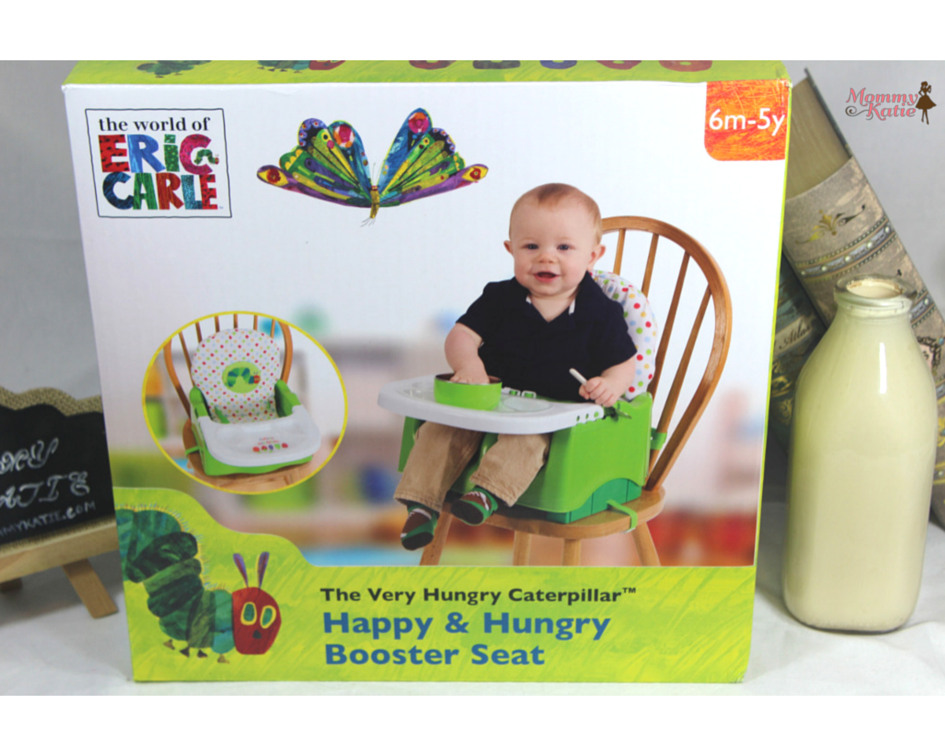 With this booster seat, we not only get a great booster that is portable, allowing us to tote it with us when we travel, but also one that is easy to set up and makes both this mom and my toddler very happy! The Hungry Caterpillar, by Eric Carle, is a favorite story in my home, and has been one of those books that we have read to each of our kids, so seeing that adorable caterpillar on this booster made it that much more fun to use in our home!