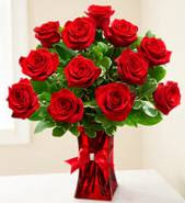 Red Roses in a Ruby Vase with Rhinestone Bow